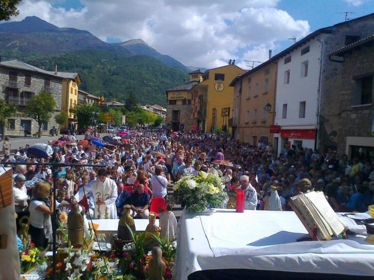 Arribarem a Castejón de Sos, un poble no massa gran però mol bonic. Ja estava ple de gent: Hi havia un ambient festiu, i tots s’anaven agrupant al redós de l’església preparant per fer la processó. Vàrem comptar 30 imatges de María amb les més avariades advocacions; entre elles hi era la nostra, la Verge Blanca de l’Acadèmia. Una processó que anava serpentejant tots el carrers del poble. Impressionant el moment d’arribada a la plaça, on es celebraria la Missa. Moltes cadires i molt bona organització. Uns 20 mossens concelebraren l’eucaristia presidida pel Sr. Bisbe de Barbastro que es veia molt satisfet. En acabar la celebració, el mateix Sr. Bisbe anuncià amb molt de goig que l’any vinent es faria la XXXV Romeria al Pont de Suert amb l’assistència dels dos bisbes. Una bona fita per tots nosaltres les lleidatans i els parroquians del Carme. I per què no portar la nostra imatge del Carme?
