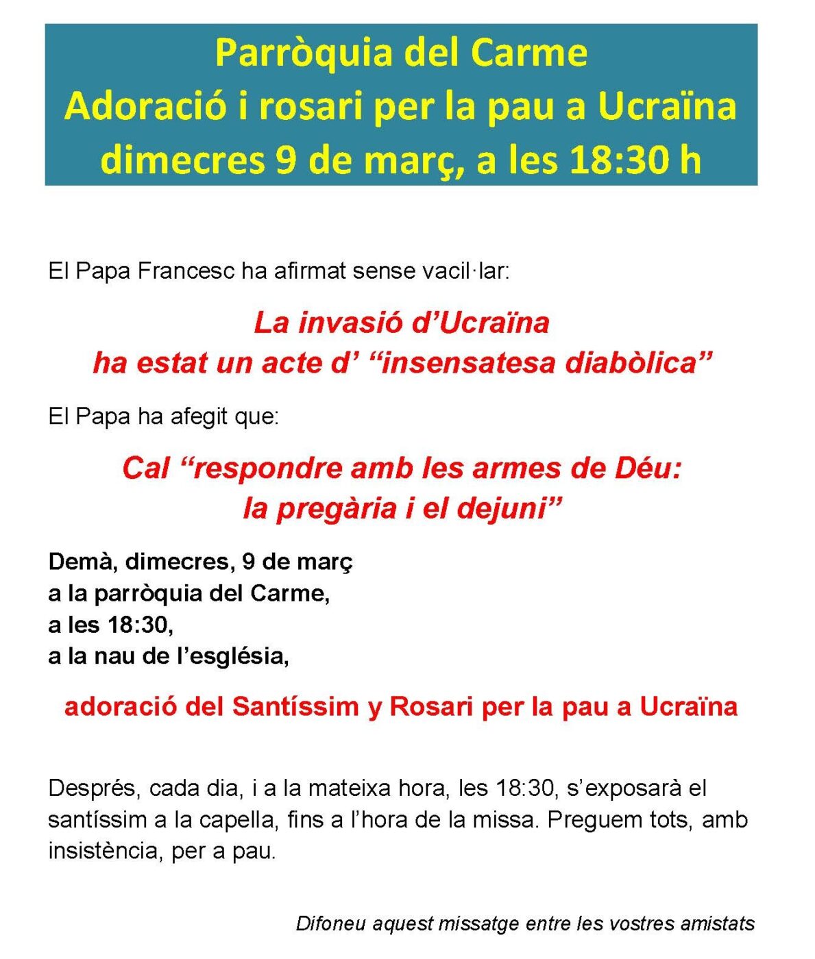 ADORACIÓ I ROSARI PER LA PAU A UCRAÏNA