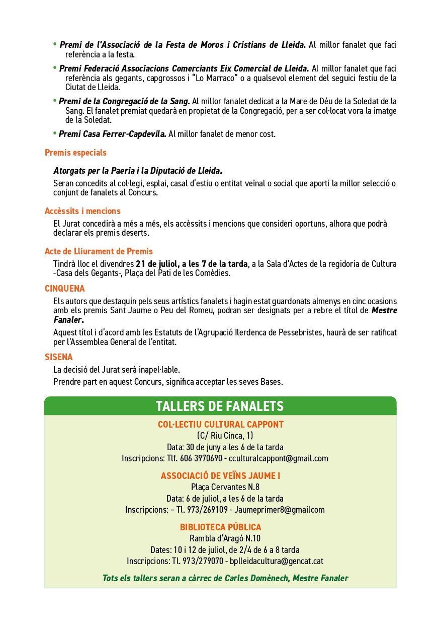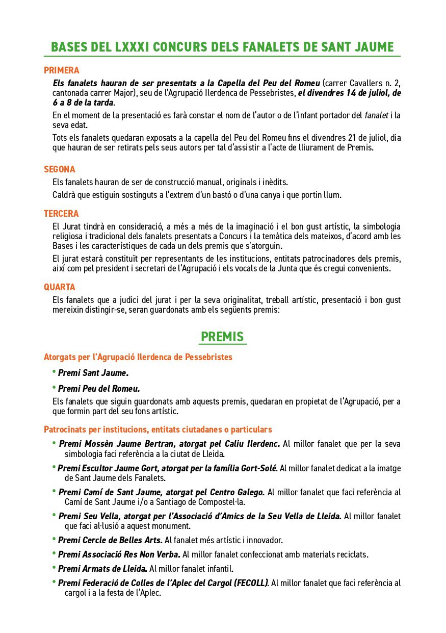 - Els fanalets hauran de ser presentats a la Capella del Peu del Romeu (carrer Cavallers n. 2, cantonada carrer Major), el dia 14 de juliol, dissabte, de 6 a 8 de la tarda.