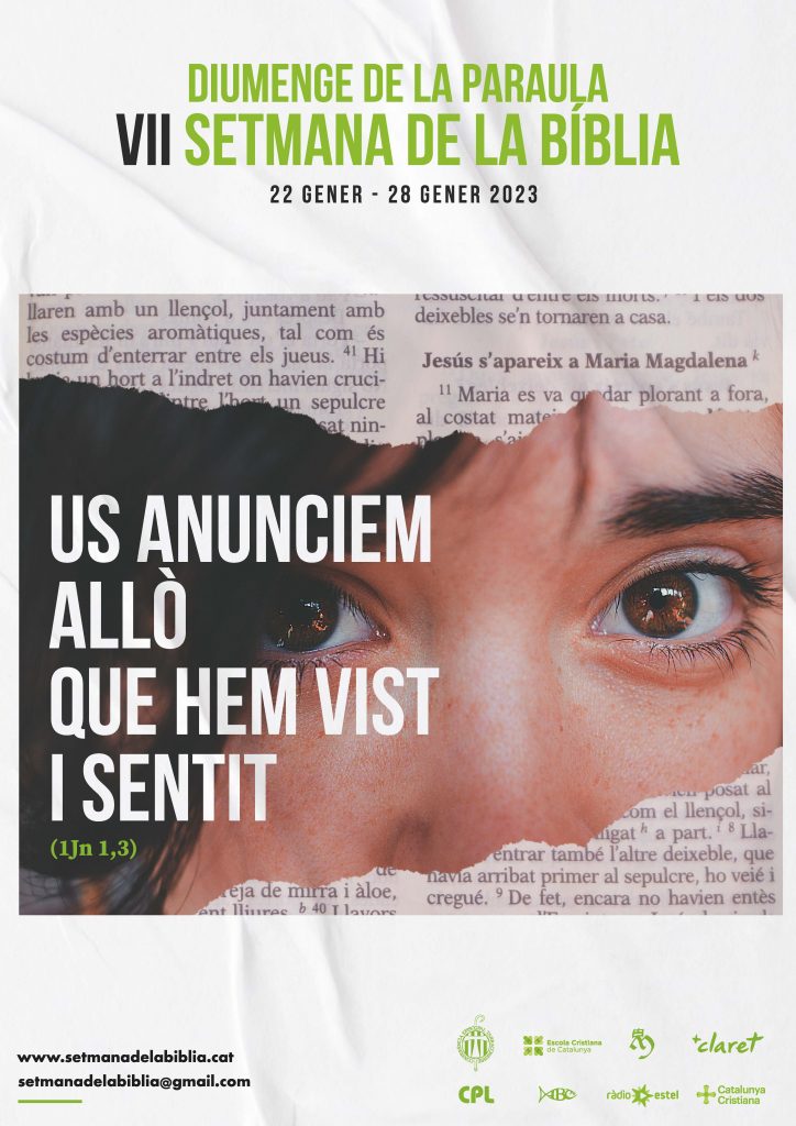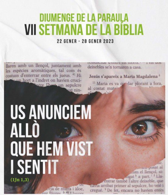 Del 22 al 28 de gener del 2023 tindrà lloc la VII Setmana de la Bíbliaque va precedida pel Diumenge de la Paraula de Déu, jornada instituïda des de 2019 pel papa Francesc per tal de ser celebrada el III Diumenge de durant l’any (enguany, diumenge 22 de gener). El lema d’aquesta edició és “Us anunciem allò que hem vist i sentit” (1Jn 1,3).