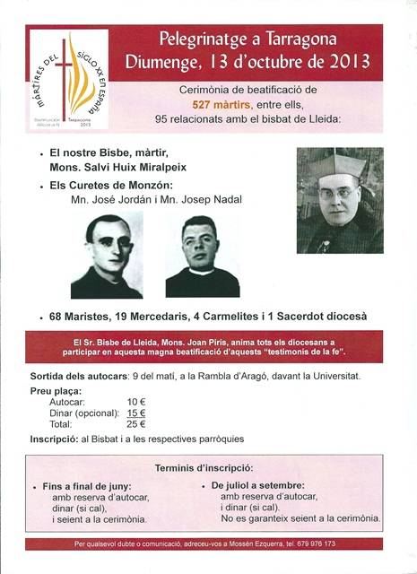 Entre els màrtirs hi ha el bisbe de Lleida, Salvio Huix, i "los curetas de Monzón".