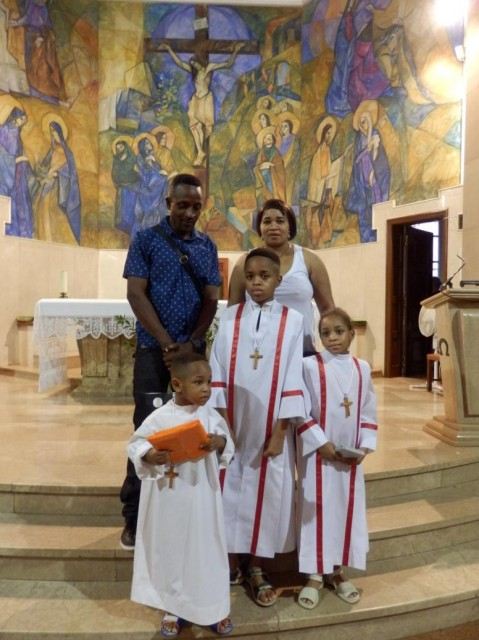El Bisbe Salvador ha batejat un matrimoni nigerià i els seus tres fills a la parròquia del Carme abans de la Missa de Sant Jaume dels Fanalets. Els pares, Roger i Esther, també han rebut el sagrament de la Confirmació
