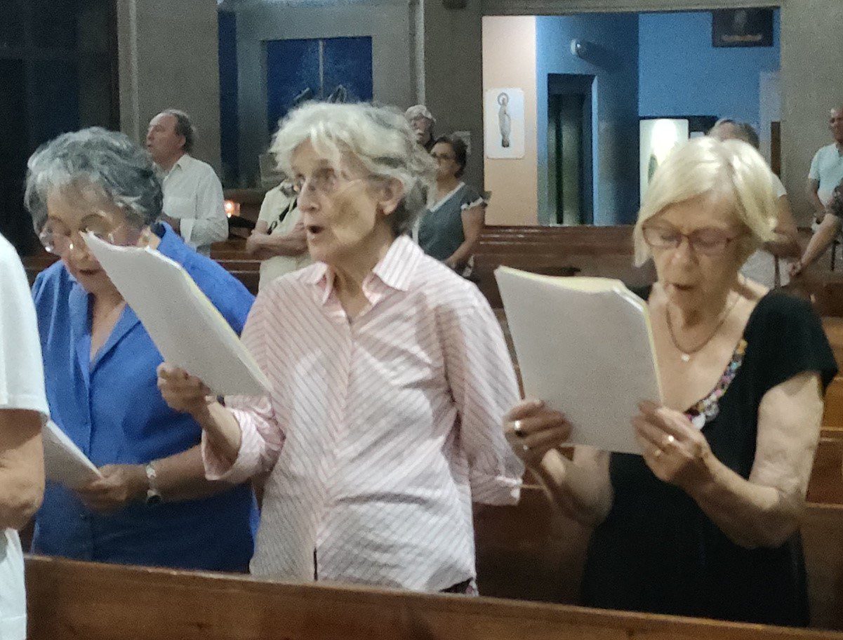 La cerimònia va tenir la música com a protagonista, en honor a Maria Carme, que la va viure amb una intensitat exemplar. Entre les peces interpretades pels cantaires, dirigits per Albert Cabero, van destacar “Rossinyol que vas a França”, a l’entrada del fèretre, i el “Virolai” a la sortida, coincidint l’acte amb la celebració de la Mare de Déu de Montserrat.