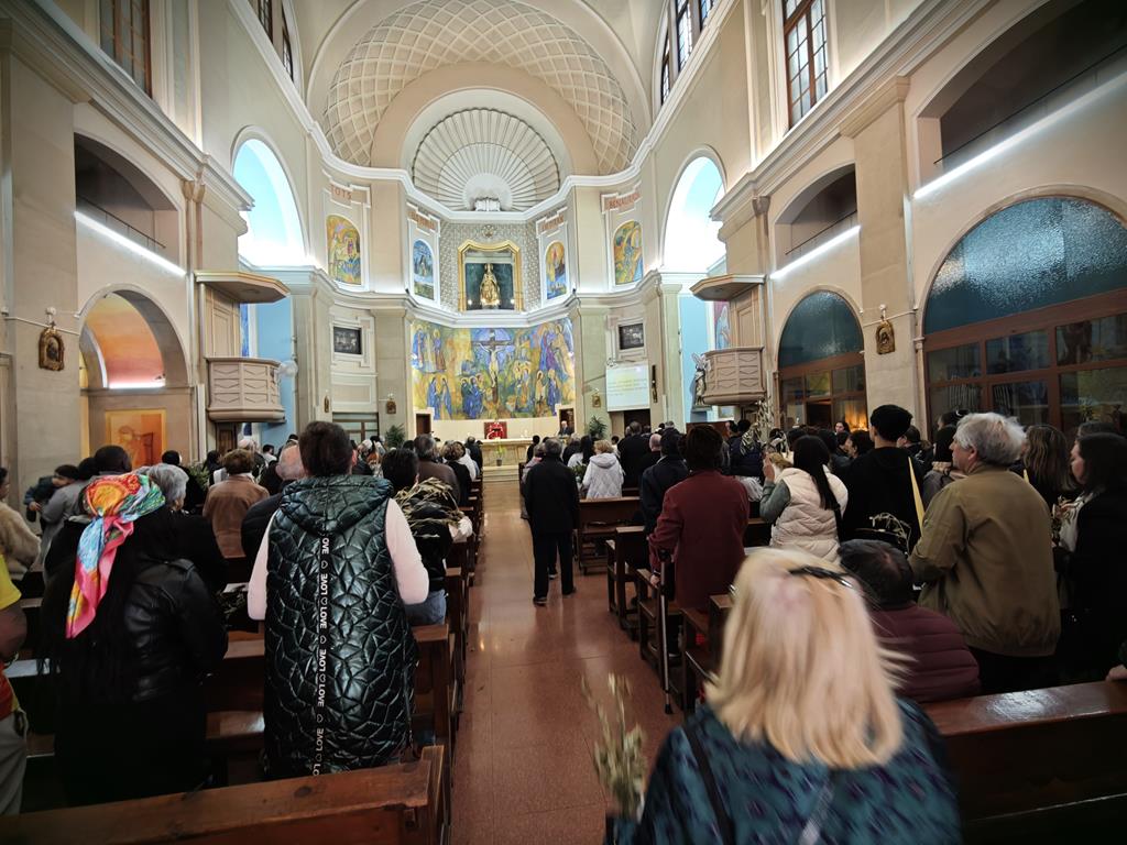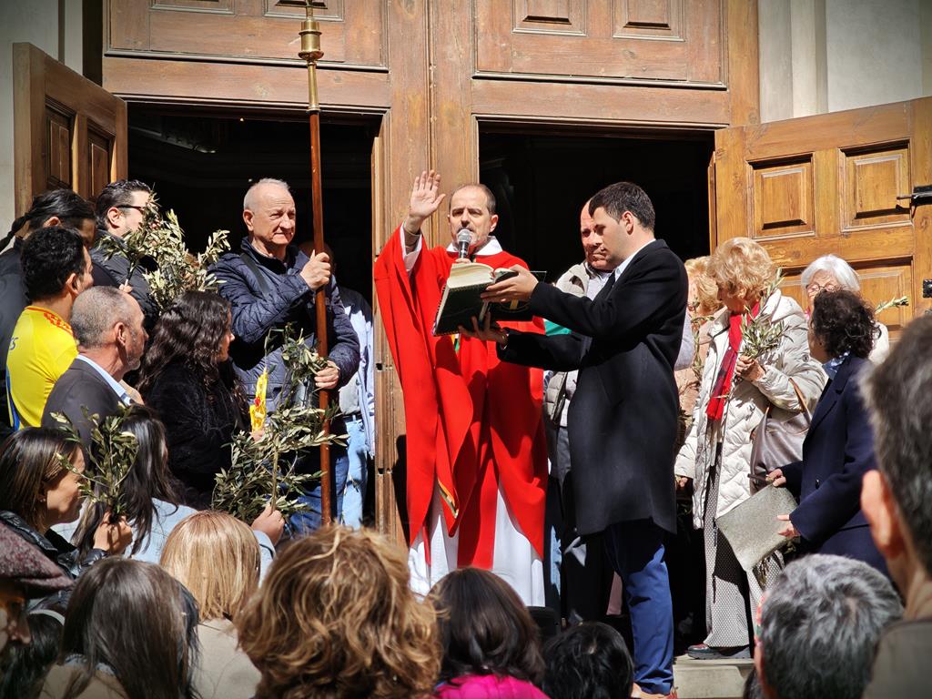A la parròquia ens hem reunit amb rams d’olivera i de llorer per commemorar l’entrada triomfal de Jesús a Jerusalem. Mossèn Xavier ha beneït els rams i, després de la proclamació de l’evangeli que recorda aquest esdeveniment, els fidels, congregats a l’escala d’accés al temple, hem avançat en processó fins a l’altar tot cantant: “Lauda Jerusalem, Dominum; Lauda Deum tuum, Sion. Hosanna, hosanna Filio David” —“Lloeu el Senyor, Jerusalem; lloeu el vostre Déu, Sió. Hosanna, hosanna al Fill de David.”