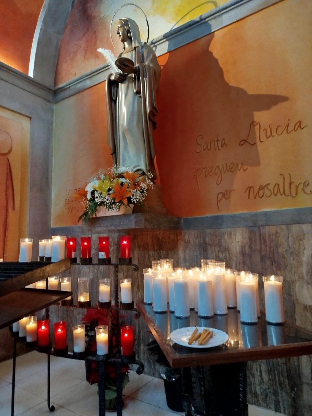 A primera hora s’ha fet el res de Laudes i al llarg del matí moltes persones han pogut venerar santa Llúcia i encendre espelmes perquè ens ajudi a preparar-nos per a viure el misteri de l’adveniment del Senyor.