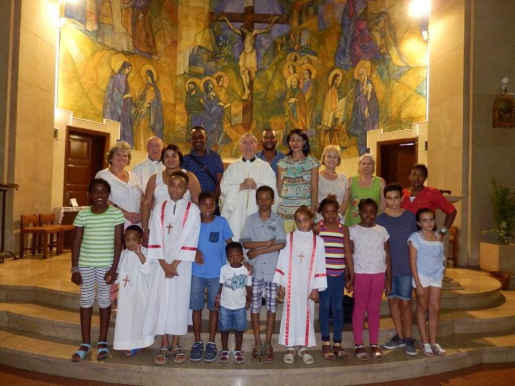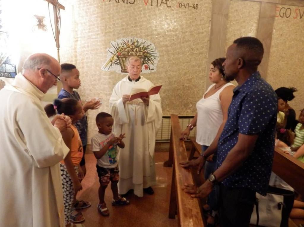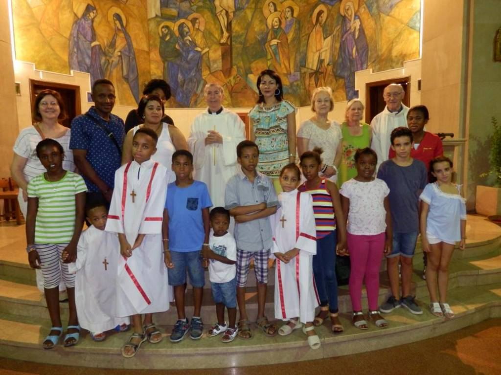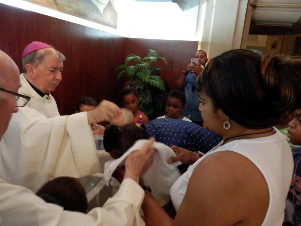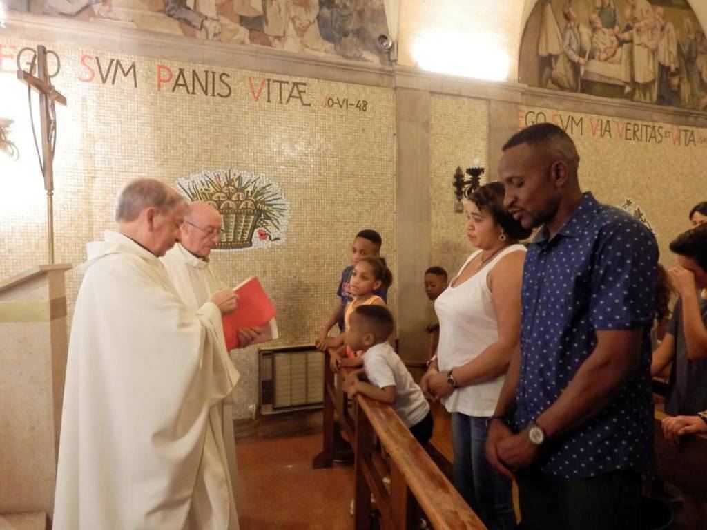 El Bisbe Salvador ha batejat un matrimoni nigerià i els seus tres fills a la parròquia del Carme abans de la Missa de Sant Jaume dels Fanalets. Els pares, Roger i Esther, també han rebut el sagrament de la Confirmació i la Comunió, completant l’itinerari d’iniciació cristiana rebuda de Mn. Joan R. Ezquerra, que ha concelebrat l’Eucaristia amb el Bisbe. Els tres fills Kevin, Stephanie i Bright s’incorporaran progressivament a la catequesi infantil per a continuar la formació per a la Primera Comunió.