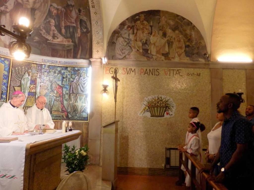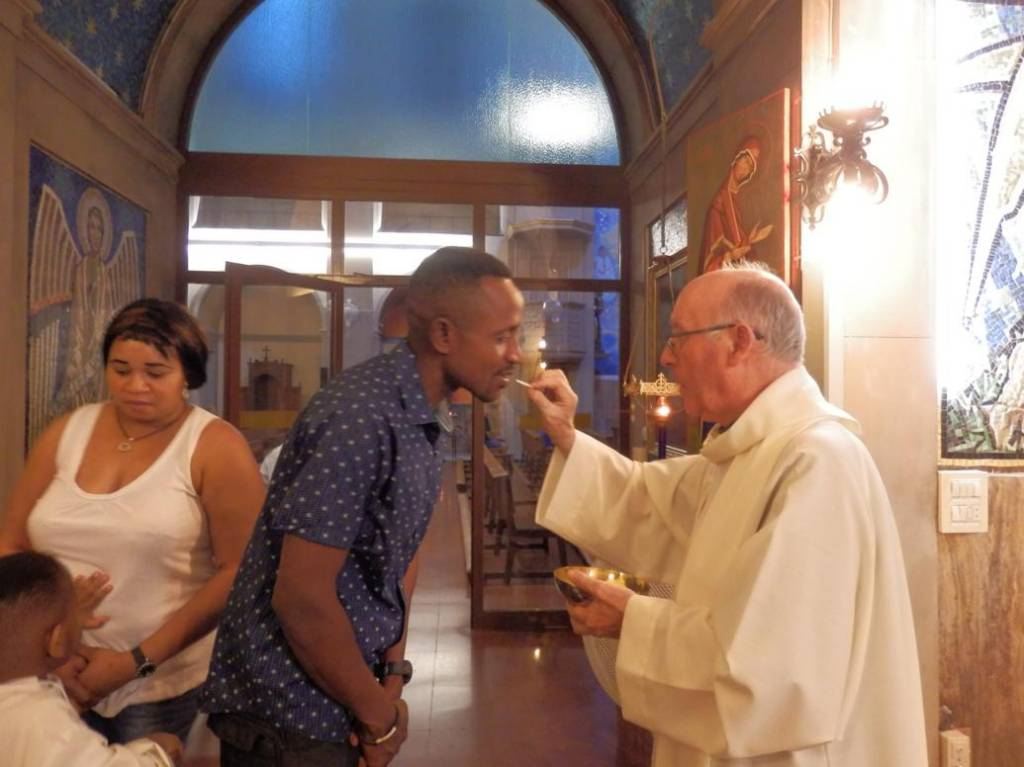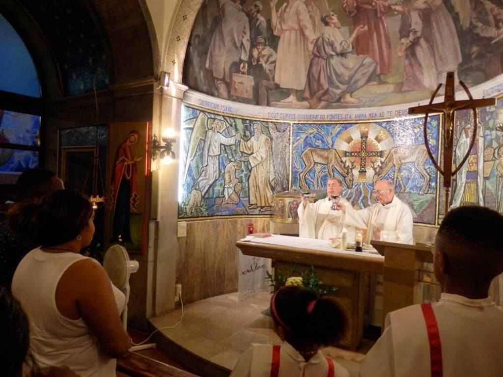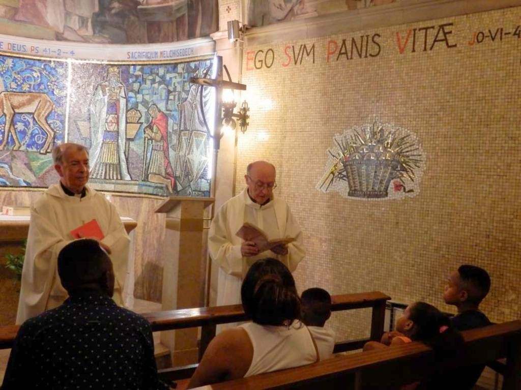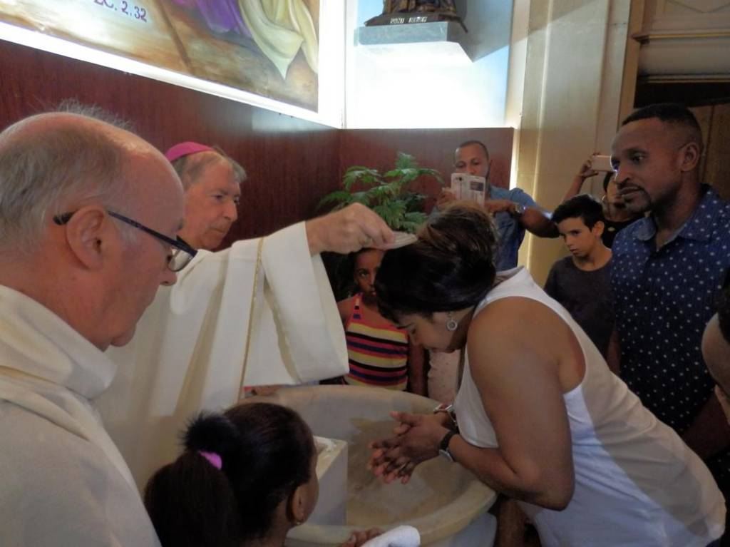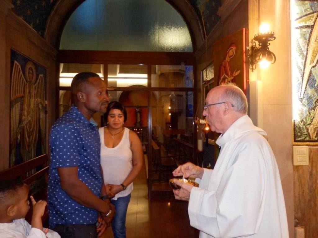 El Bisbe Salvador ha batejat un matrimoni nigerià i els seus tres fills a la parròquia del Carme abans de la Missa de Sant Jaume dels Fanalets. Els pares, Roger i Esther, també han rebut el sagrament de la Confirmació i la Comunió, completant l’itinerari d’iniciació cristiana rebuda de Mn. Joan R. Ezquerra, que ha concelebrat l’Eucaristia amb el Bisbe. Els tres fills Kevin, Stephanie i Bright s’incorporaran progressivament a la catequesi infantil per a continuar la formació per a la Primera Comunió.